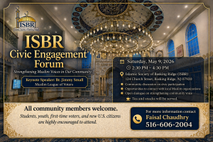 We are also inviting members of other communities from around Somerset and Union Counties, and masjids within the area close to us, to participate and share their knowledge and experiences with the ISBR community.