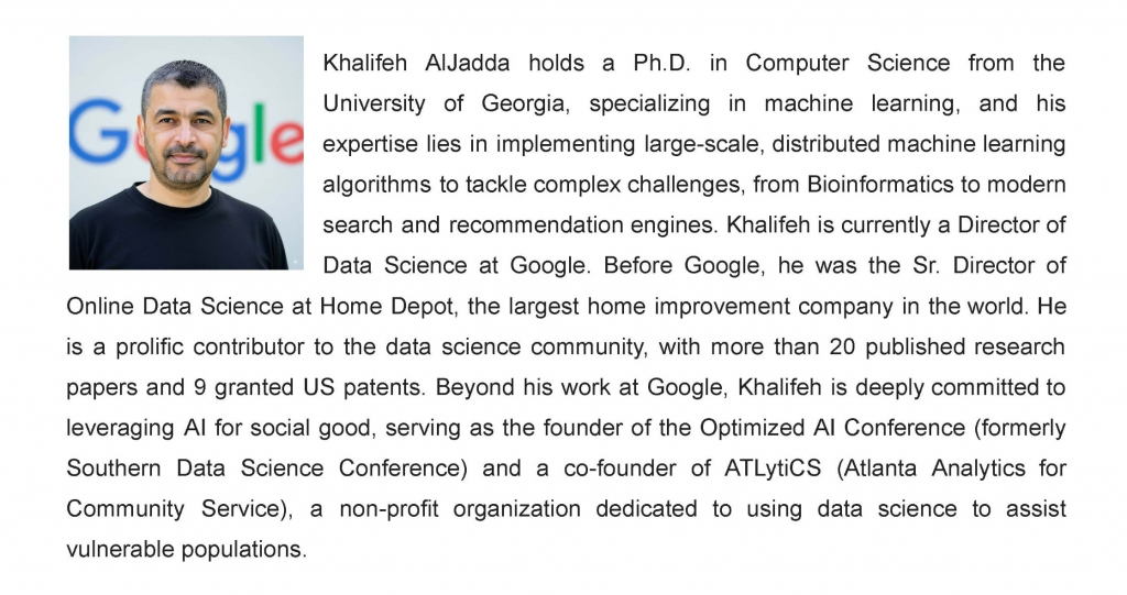 👨🏻🏫 Speaker: Dr. Khalifeh Aljadda, Director of Data Science at Google.